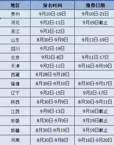 一级消防工程师各地区报考时间